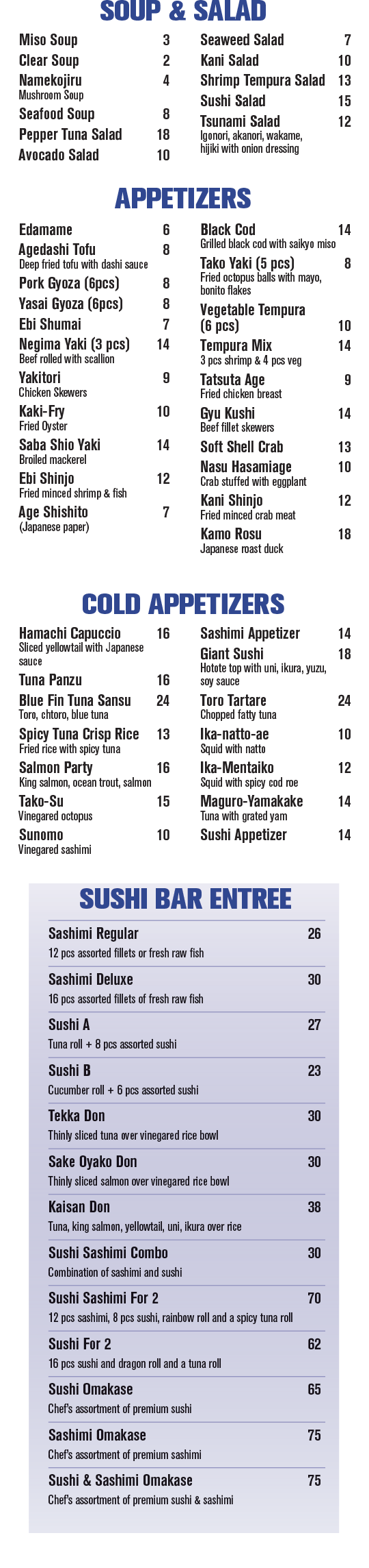 Restaurant Yamaguchi is one of the few truly remaining Japanese owned and operated restaurants left on Long Island. The Chef's Special Sushi & Sashimi Combination is prepared by Mr. Yamaguchi himself and cannot be missed. With the sushi’s bar’s most renowned dish being the assortment of unique seasonal appetizers brings the taste of Japanese home cooking straight to you.