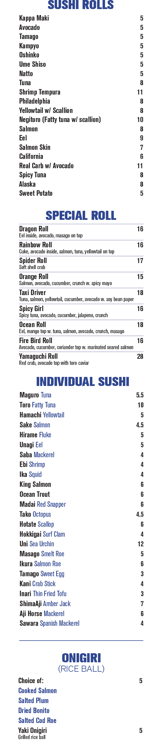 Mr. Yamaguchi is a master at his craft, serving pristine sushi and sashimi that surpasses many NYC establishments for a fraction of the price. Mrs. Yamaguchi runs the front of the house warmly greeting all guests as if they are family.